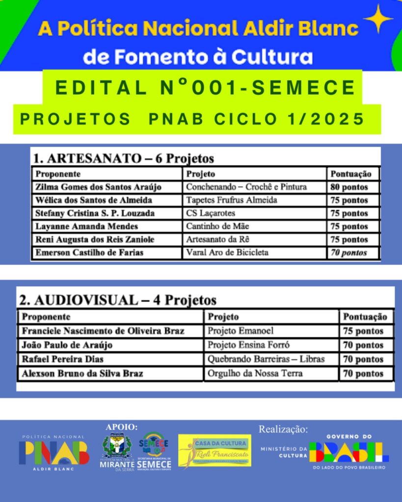 EDITAL N° 001/SEMECE PROJETO PNAB CICLO 1/2025