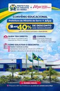 SEMAFP PREFEITURA MUNICIPAL DE MIRANTE DA SERRA/RO + AFYA CENTRO UNIVERSITÁRIO JI-PARANÁ/RO. CONVÊNIO EDUCACIONAL Leia Mais > 12 de janeiro de 2026 14:42