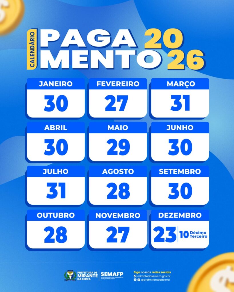 PREFEITURA DE MIRANTE DA SERRA DIVULGA CALENDÁRIO DOS SERVIDORES MUNICIPAIS.